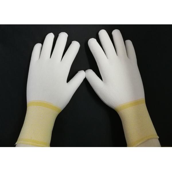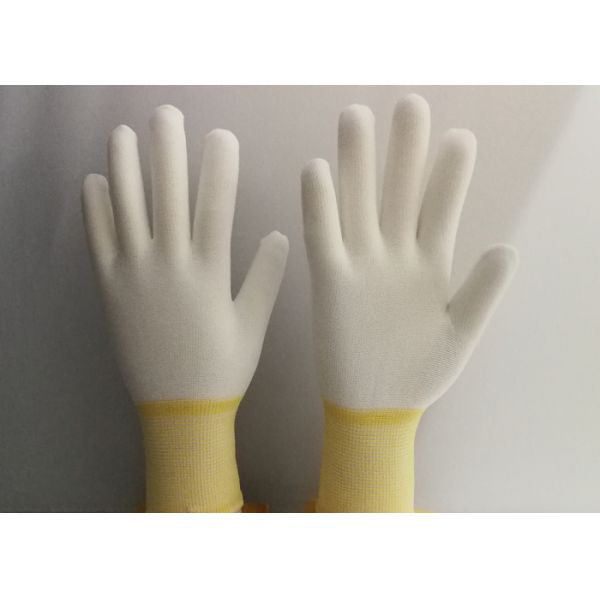 Yellow PU Coated Gloves Hot Melt Binding Edge With 100% Nylon Knitted Liner Images |